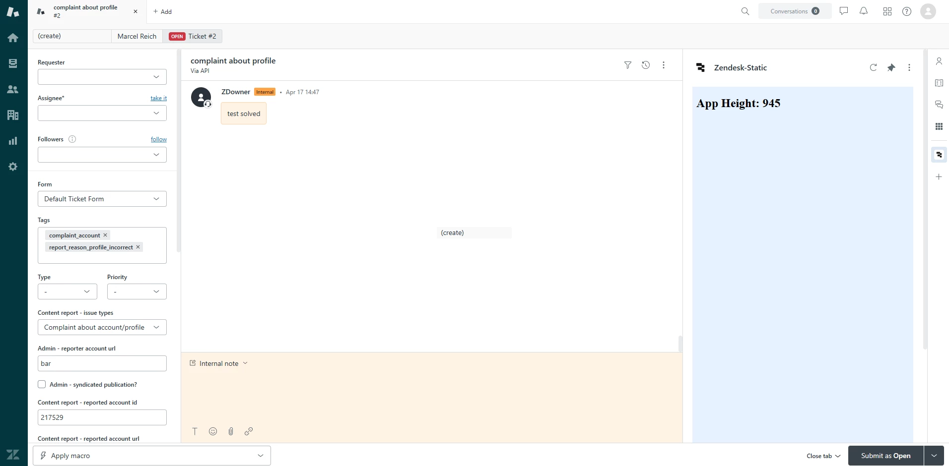 We’ve also tried using CSS to enforce full height, including height: 100% and min-height: 100vh on the body and root elements, but that didn’t solve the issue either. We noticed that Zendesk’s own demo apps (e.g. https://github.com/zendesk/demo_apps/blob/master/v2/support/basic_ticket_sample_app/assets/iframe.html) navigate around this by setting small fixed heights, but that’s not sufficient for real-world use cases like ours.