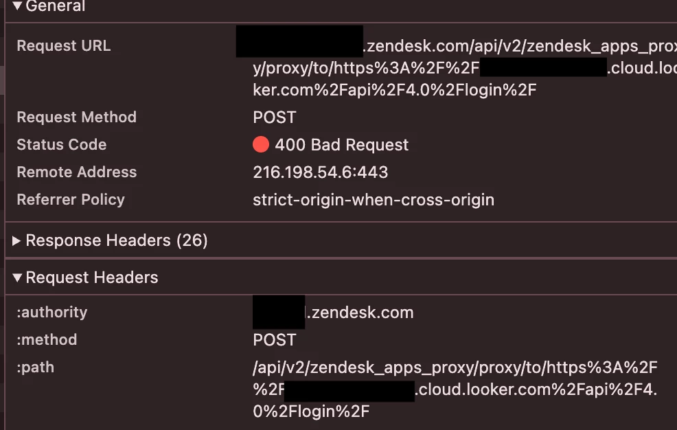 const response = await zafClient.request(loginOptions);i got 400 bad request, when i am trying with curl/postman it's worked, currently i'm using zaf sdk version 2.0.11, anyone can help me?