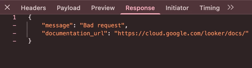 request actually go to the looker side, but it returns bad request