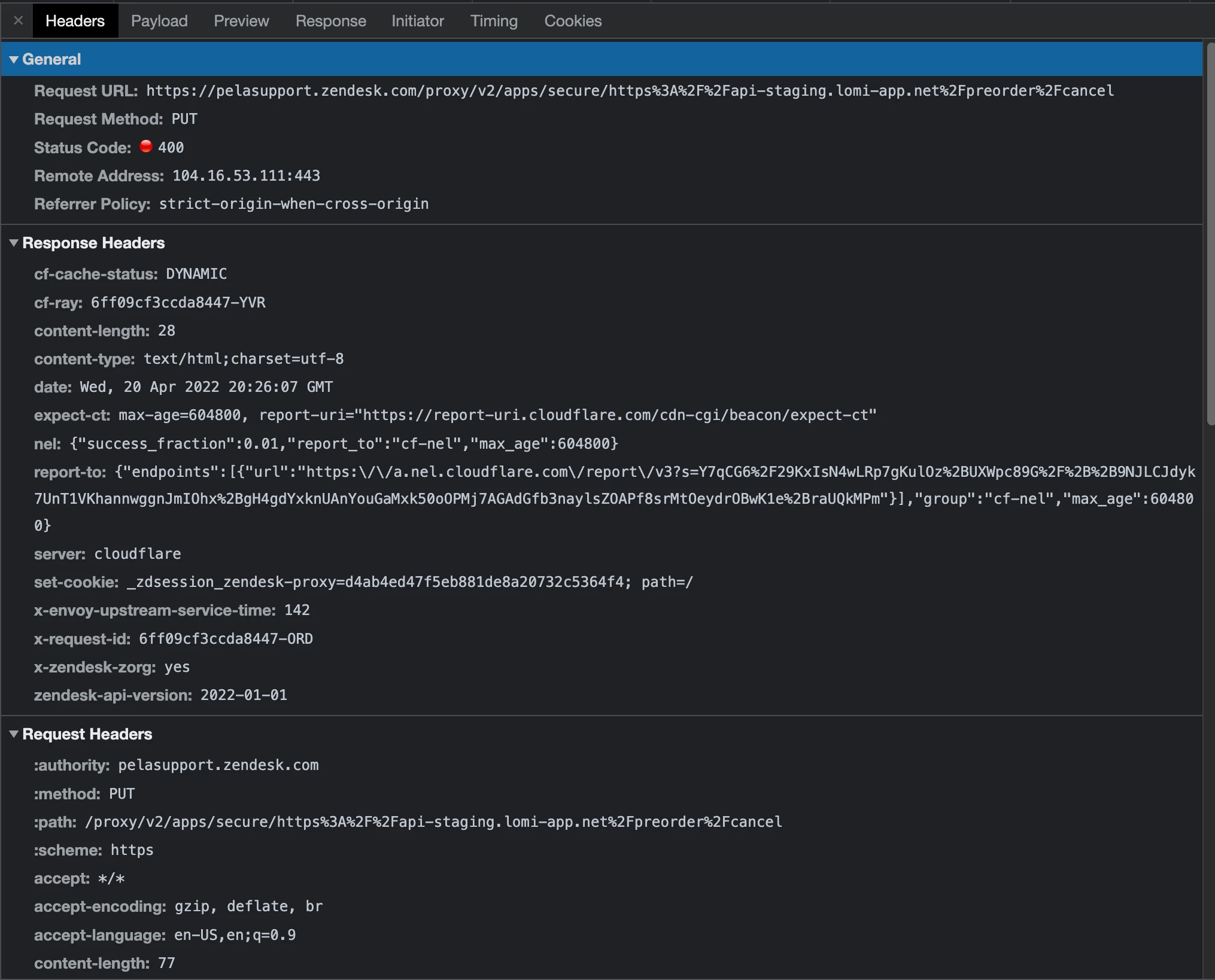 Is this an error with the request that our Zendesk app sends to the Zendesk proxy or is the error from our API when the proxy sends the request to our API? Does the Zendesk proxy add headers to the request to our API?