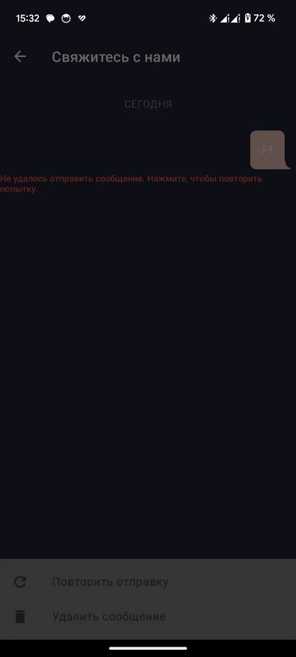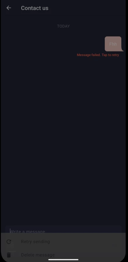 3. Try and fail to send a message, an error will be displayed ("Message failed. Tap to retry")