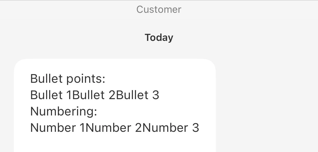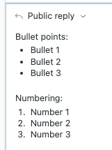 We use dynamic content in our macros. When adding bullets and numbering formats to dynamic content, then sending that content to customers with the macros the dynamic content is in, the bullet and numbering format disappears. On the user's end, the response is just jumbled words.