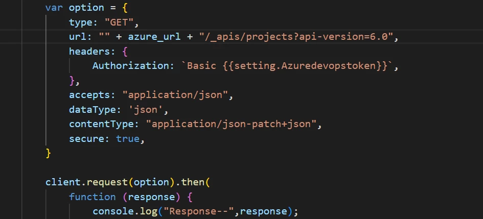 Authorization: `Basic x:{{setting.Azuredevopstoken}}`,