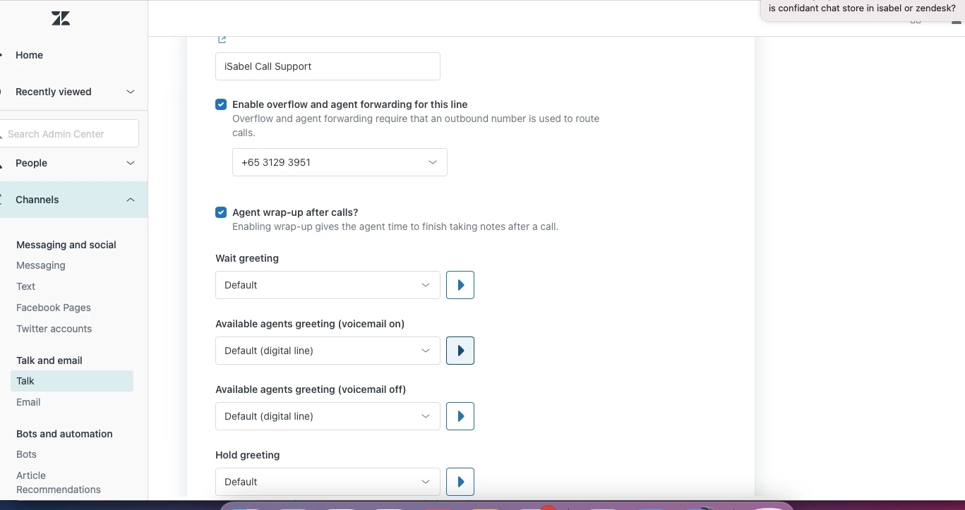 When start zendesk talk call welcome voice starting in middle "May be call recording for training session" need to disable how can I achieve it .
