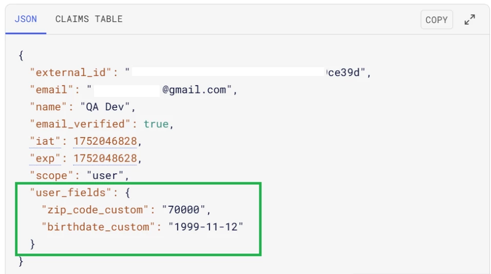 I've created custom fields named "ZipCode" and "BirthDate" in the Zendesk portal. Additionally, I've included these fields in the authentication JWT token. Despite these efforts, the custom fields have not been updated in the Zendesk portal as expected.