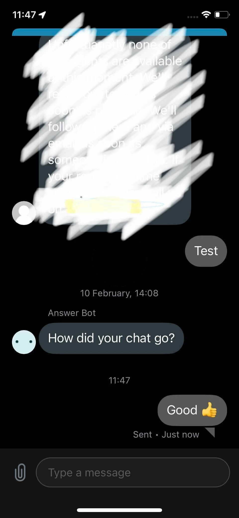 The chat widget is working fine, but there's no header and no close button.