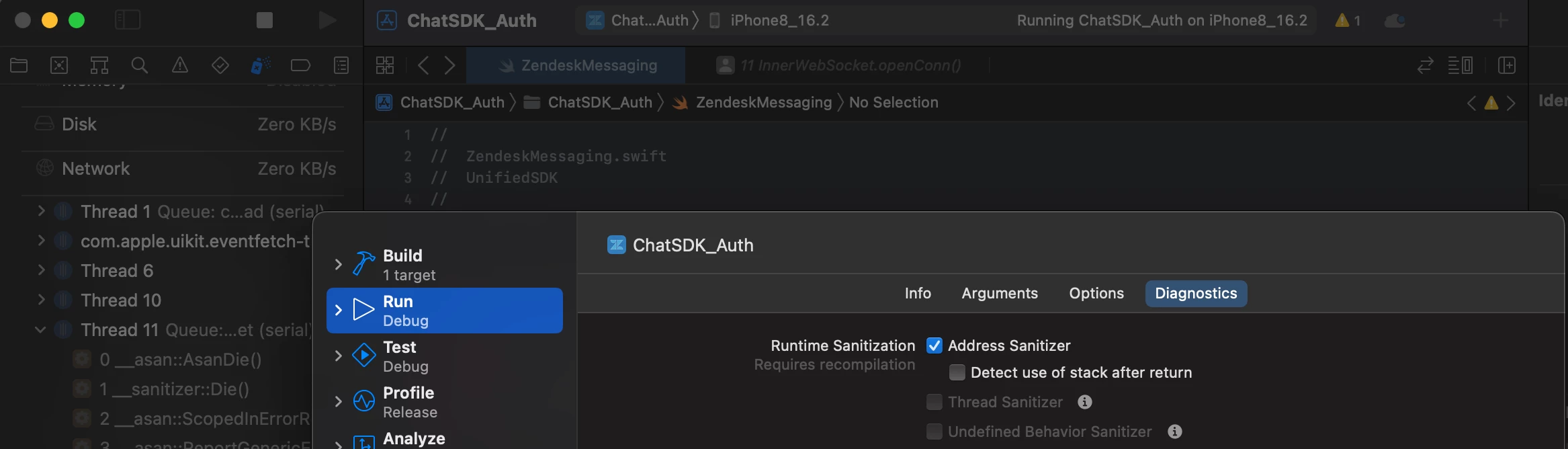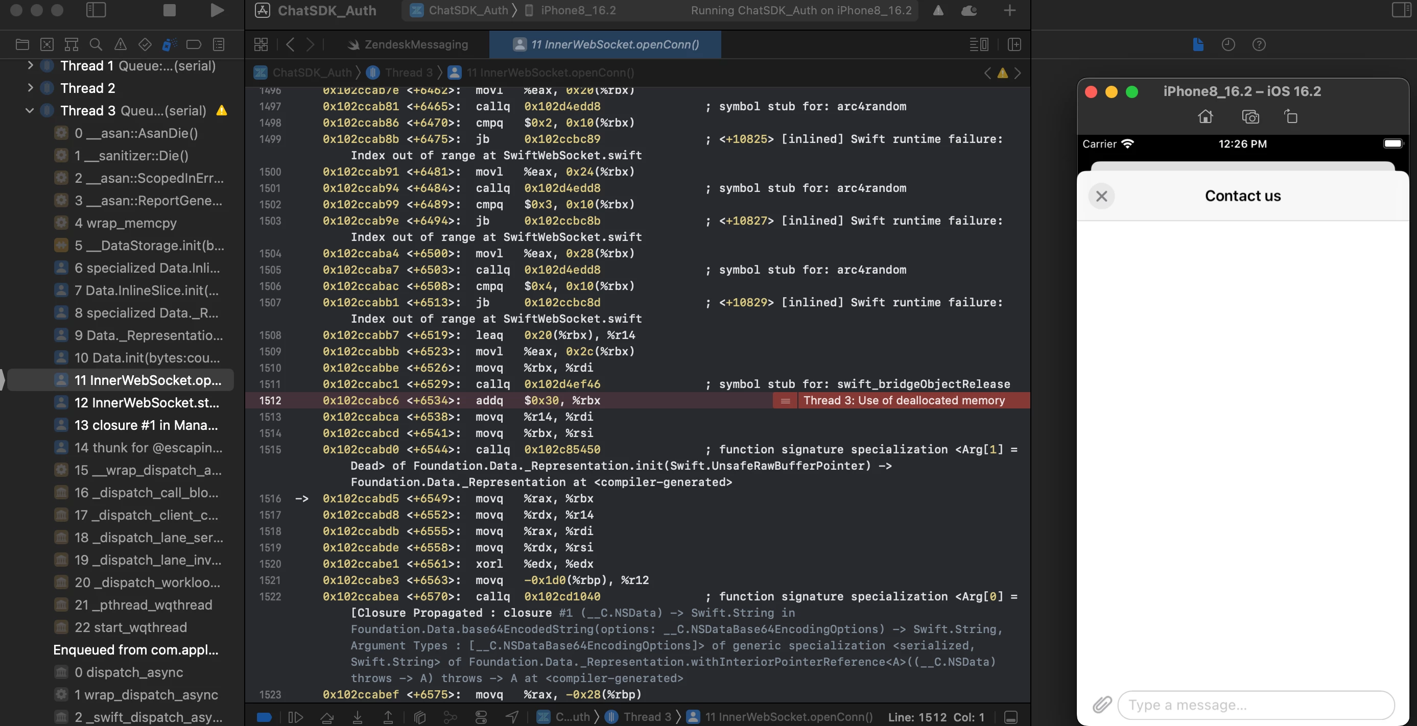 I've noticed that SDK code itself is not safe via turning on "Address Sanitizer" (ChatSDK scheme at the top -> Edit Scheme -> Diagnostics -> tick Address Sanitizer)