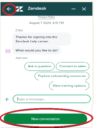 but i want to show your widgets history with back and new conversation button.please resolve me.