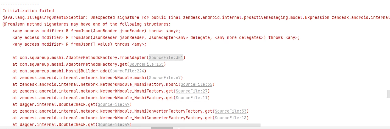 Hi Zendesk team , I successfully integrate Zendesk live messaging in our android app it work well on debug mode but on release proguard mode sdk crash on Zendesk initialization I attach error snipped below