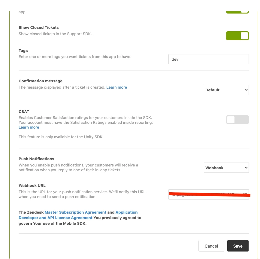 I'm doing configuration for my app to get push notification when our agent reply to the ticket support to end-user on Mobile app.
